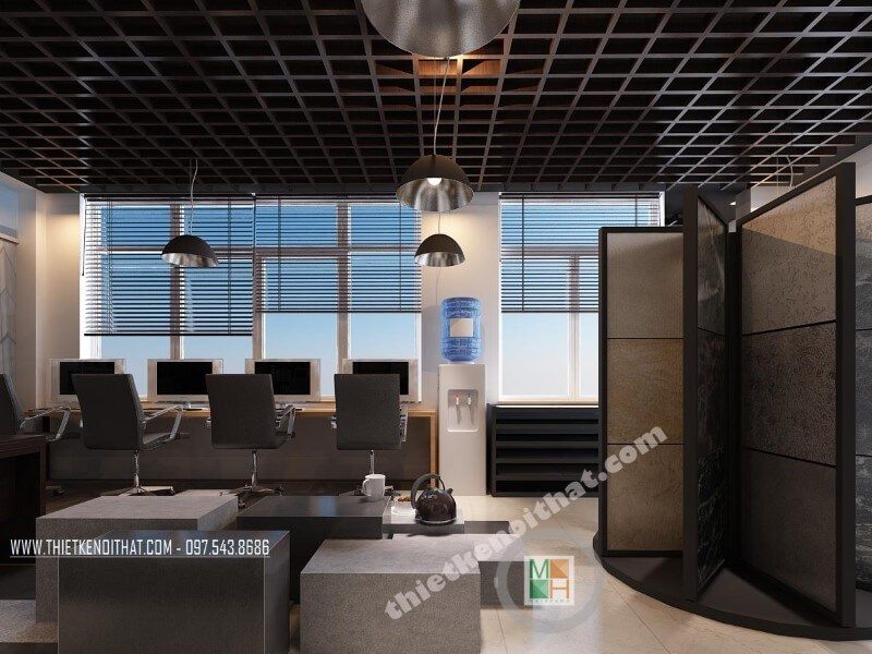 Mẫu thiết kế nội thất hiện đại với đá tự nhiên được áp dụng trong showroom có diện tích nhỏ.